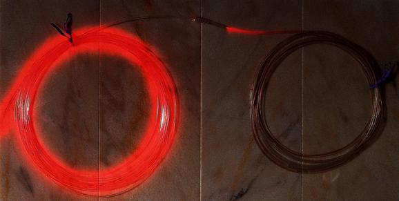 Blood specimen, PVC-tube 3 m, laser light, optical fiber 10 m, pink marble, Plexiglas, wood,