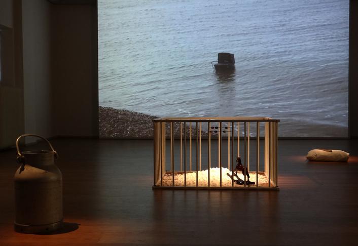 HD-projection 1 hour 15 min in loop , sound composition 20 min in loop, images on transparency in light boxes, wood, metal, textile, sugar cubes