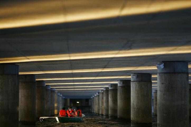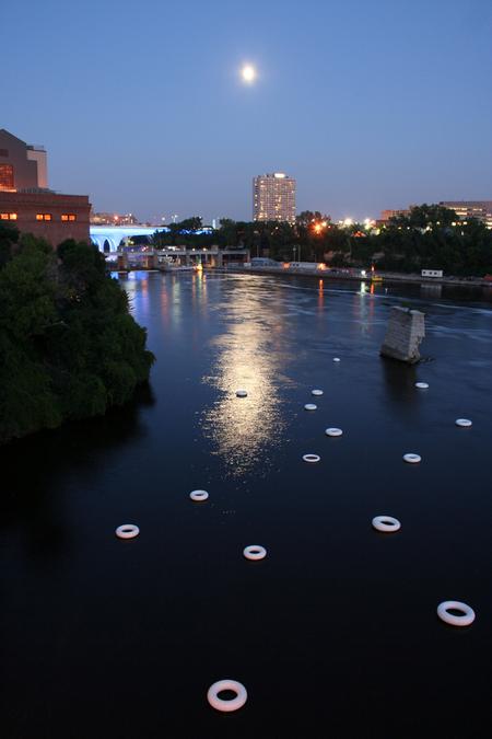 Site-specific sound and light installation on Mississippi River in Minneapolis, USA