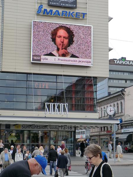 Short film portraits of people living in Turku, each with the gesture Pssst, appear in between the advertising on the digital screen on Market Place as well the digital screens on several city busses