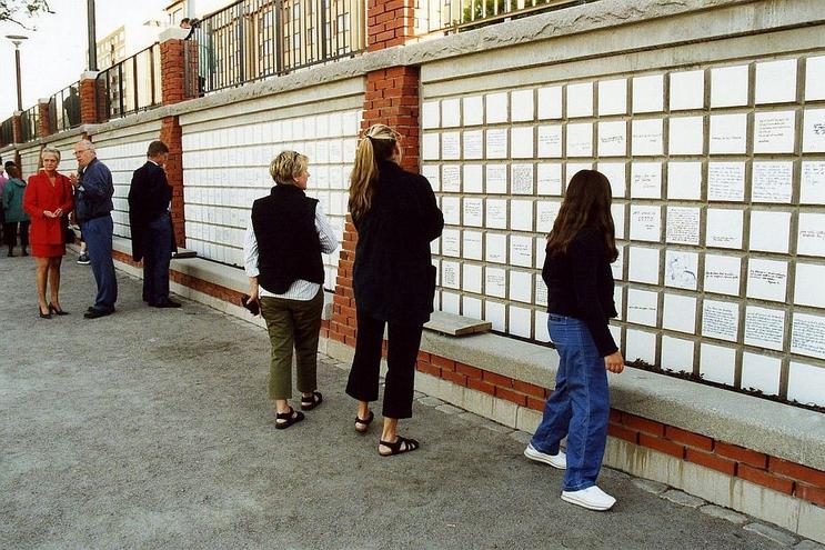 Ceramic tiles, 20 x 20 cm, ceramic glaze, authentic letters from people living in Linköping, sharing their wishes and dreams for the future, total size of the wall 2 x 20 m