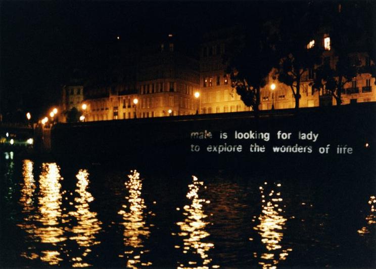 Projection of lonely-heart ads along the quays during a 3 hours boat tour on Seine, Paris, France
