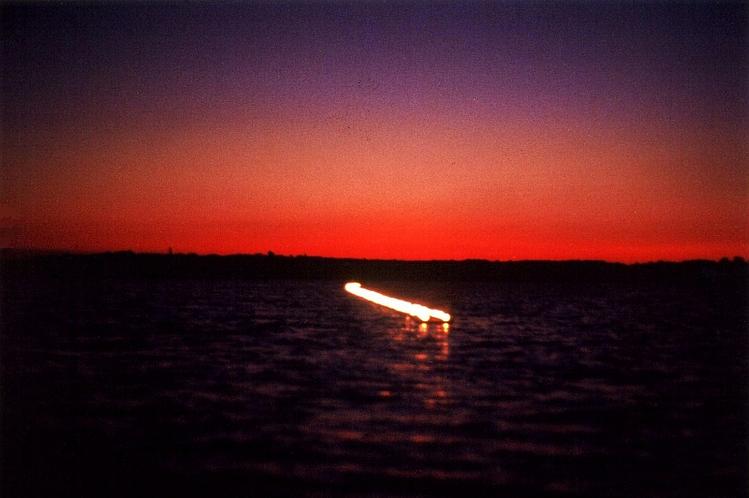 8 km journey with a rowing boat, dragging a fire-tail 200 m long, duration one night, Lake Mälaren, Sweden